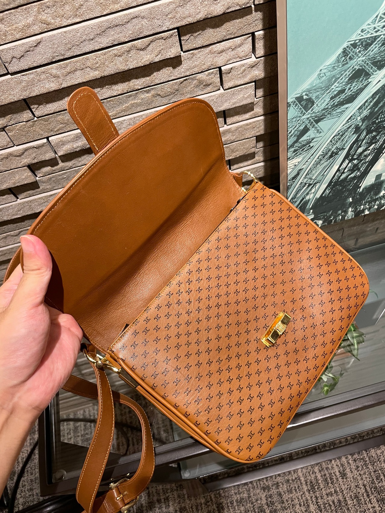 セリーヌ レザーショルダーバッグ マカダム